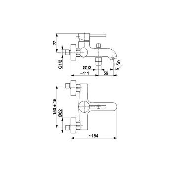 Bateria wannowa ścienna FERRO SAVIO, kolor chrom
