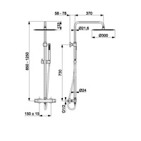 84404-11 Deszczownia WEGA z baterią natryskową naścienna chrom głowica 35