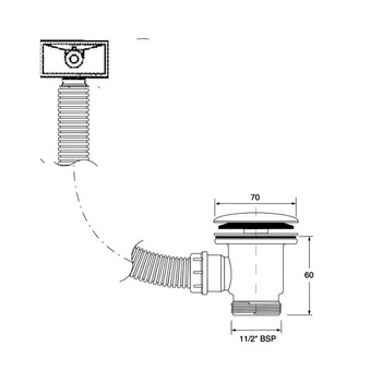 Spust zlewozmywakowy "klik-klak" 11/2"x70mm, przelew horyzontalny
