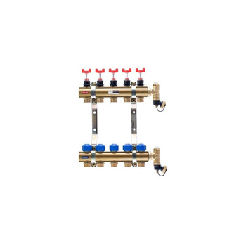 Rozdzielacz do ogrzewania podłogowego QIK BASIC II 5-obieg. mosiądz GW 1'' x GZ 3/4'' + przepływomierz
