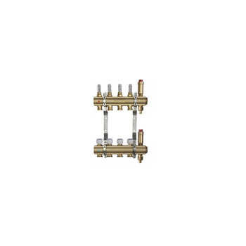 Rozdzielacz do ogrzewania podłogowego QIK BASIC TN 5-obieg. mosiądz GW 1'' x GZ 3/4'' + przepływomierz