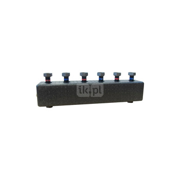 Rozdzielacz 6-drogowy (do systemów c.o. i c.w.u.) z zaworami odcinającymi obwody, stal nierdzewna