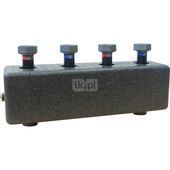 Rozdzielacz 4-drogowy (do systemów c.o. i c.w.u.) z zaworami odcinającymi obwody, stal nierdzewna