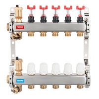 Rozdzielacz do ogrzewania podłogowego HERZ 5-obieg. stal nierdzewna GW 1'' x GZ 3/4'' + przepływomierz + zawór napełn/spust + odpowietrznik
