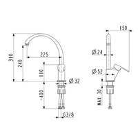 Bateria zlewozmywakowa stojąca KFA Armatura TOPAZ, obrot. wylewka, kolor chrom, mosiądz