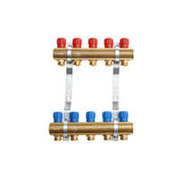Rozdzielacz do instalacji c.o. QIK Optimo III RMSRR-2 mosiądz GW 1'', 5-obieg. GZ 3/4'' z korkami i nyplami