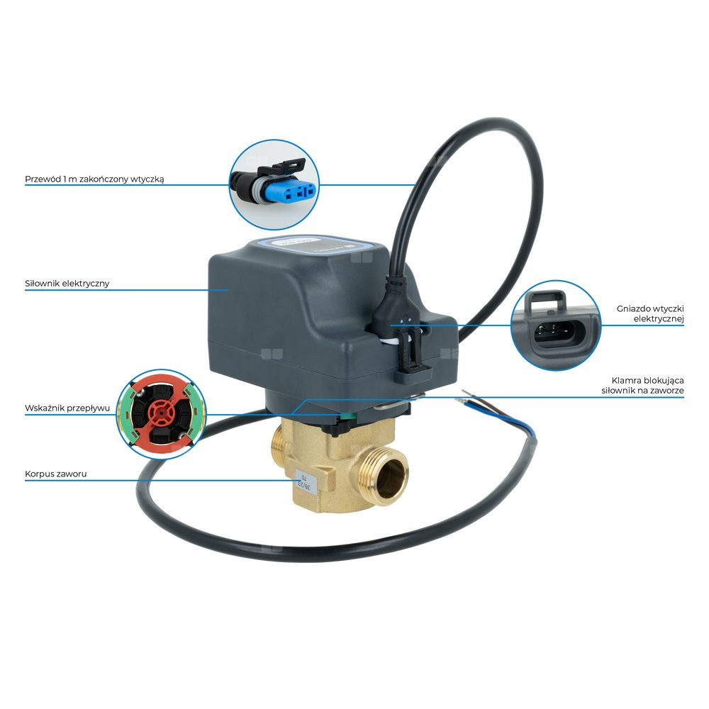 - W połączeniu ze sterownikiem lub termostatem automatyzuje pracę instalacji.