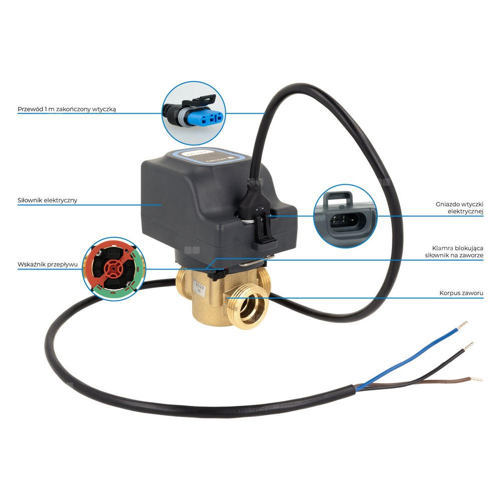 - W połączeniu ze sterownikiem lub termostatem automatyzuje pracę instalacji.
