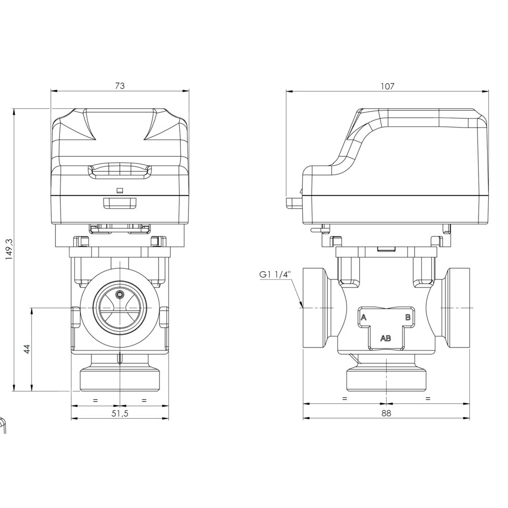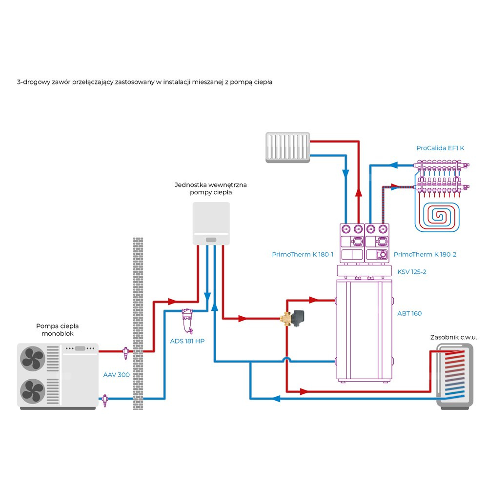 3-drogowy zawór strefowy AZV 844, DN25, G1 1/4'', Kvs 11, 230 V AC, AB-B