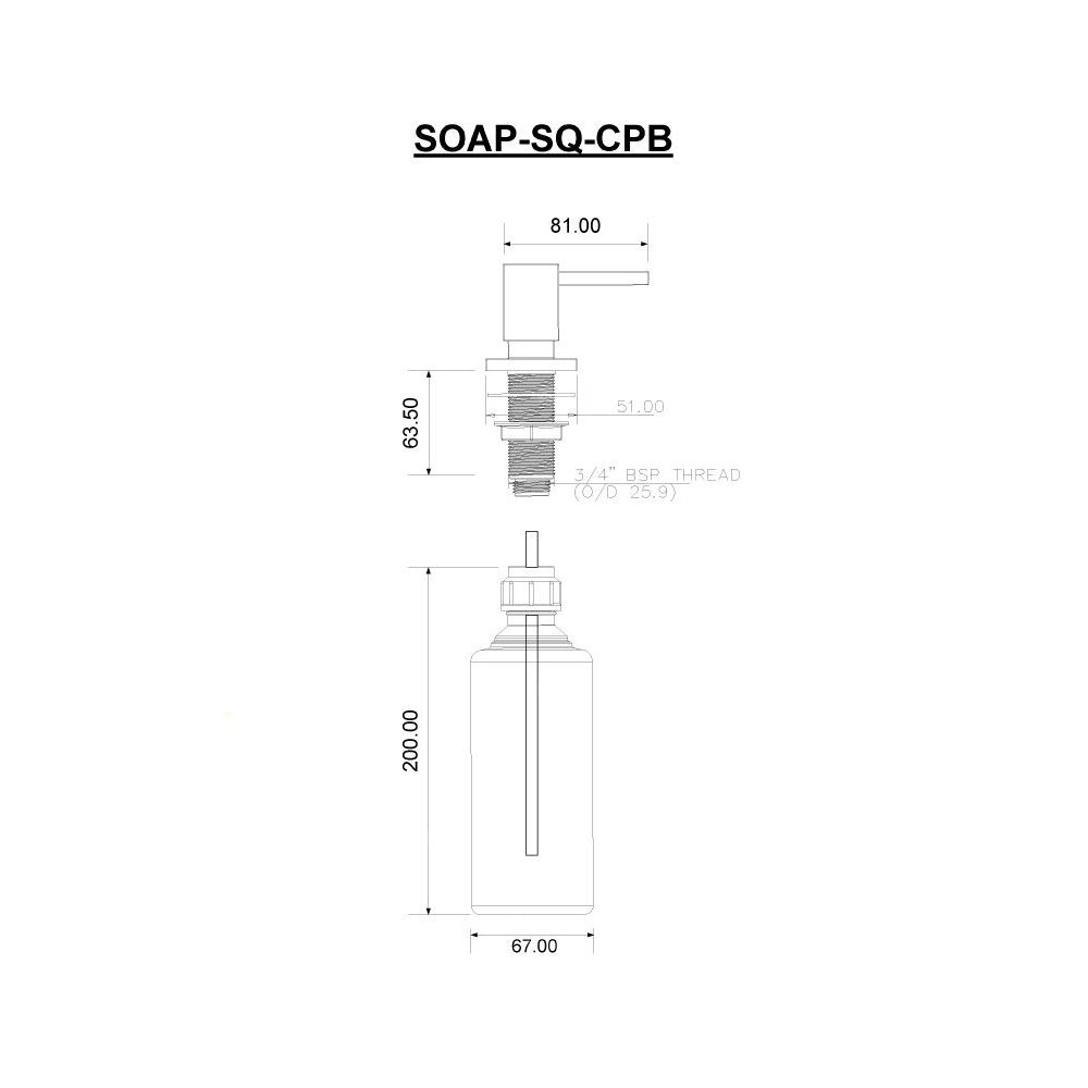 Dozownik do płynów mocowany w blacie, zlewozmywaku lub umywalce, Element dozujący mosiądz KWADRATOWY.