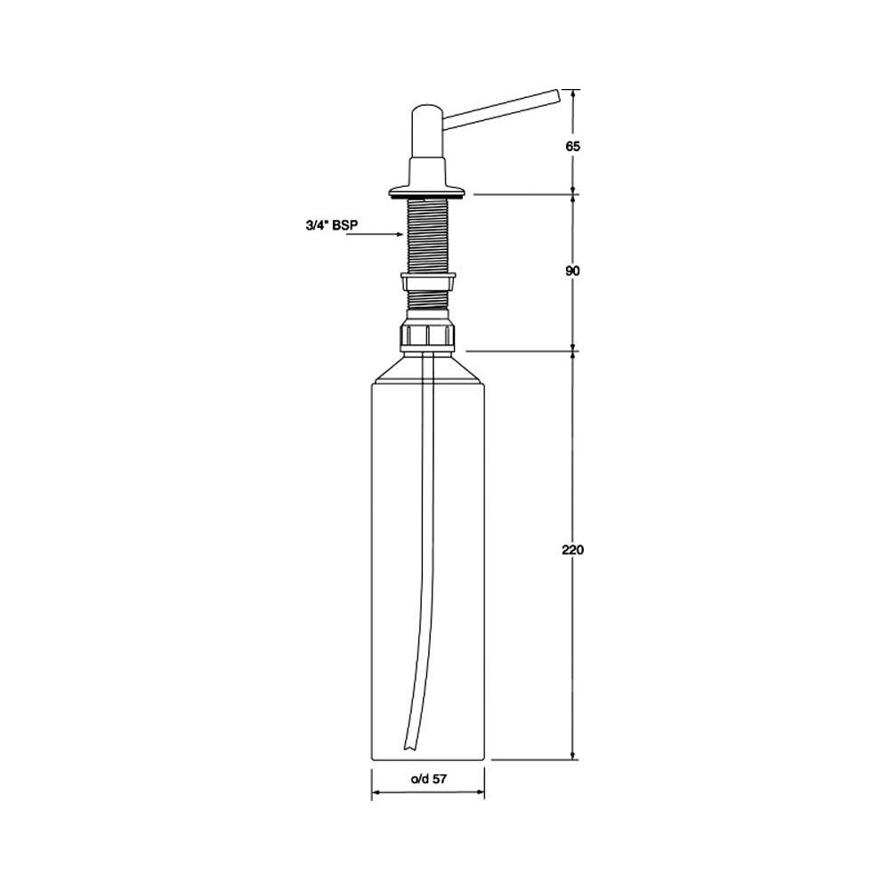 Dozownik do płynów, mocowany w blacie, zlewozmywaku lub umywalce. Element dozujący wykonany z mosiądzu. Kolor – satyna. Inne dostępne kolory: HC20-CPB – chrom, HC20-SN – stal szczotkowana, HC20-GOLD – złoty.
