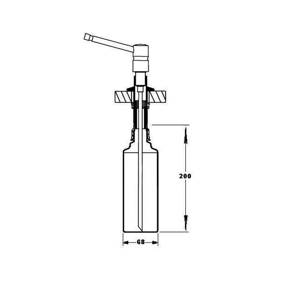 Dozownik do płynów, mocowany w blacie, zlewozmywaku lub umywalce. Element dozujący wykonany z mosiądzu, pokryty warstwą chromu. Kolor – stal szczotkowana. Inne dostępne kolory: SOAP-MT102-CPB – chrom, SOAP-MT102-AB – antyczny mosiądz.