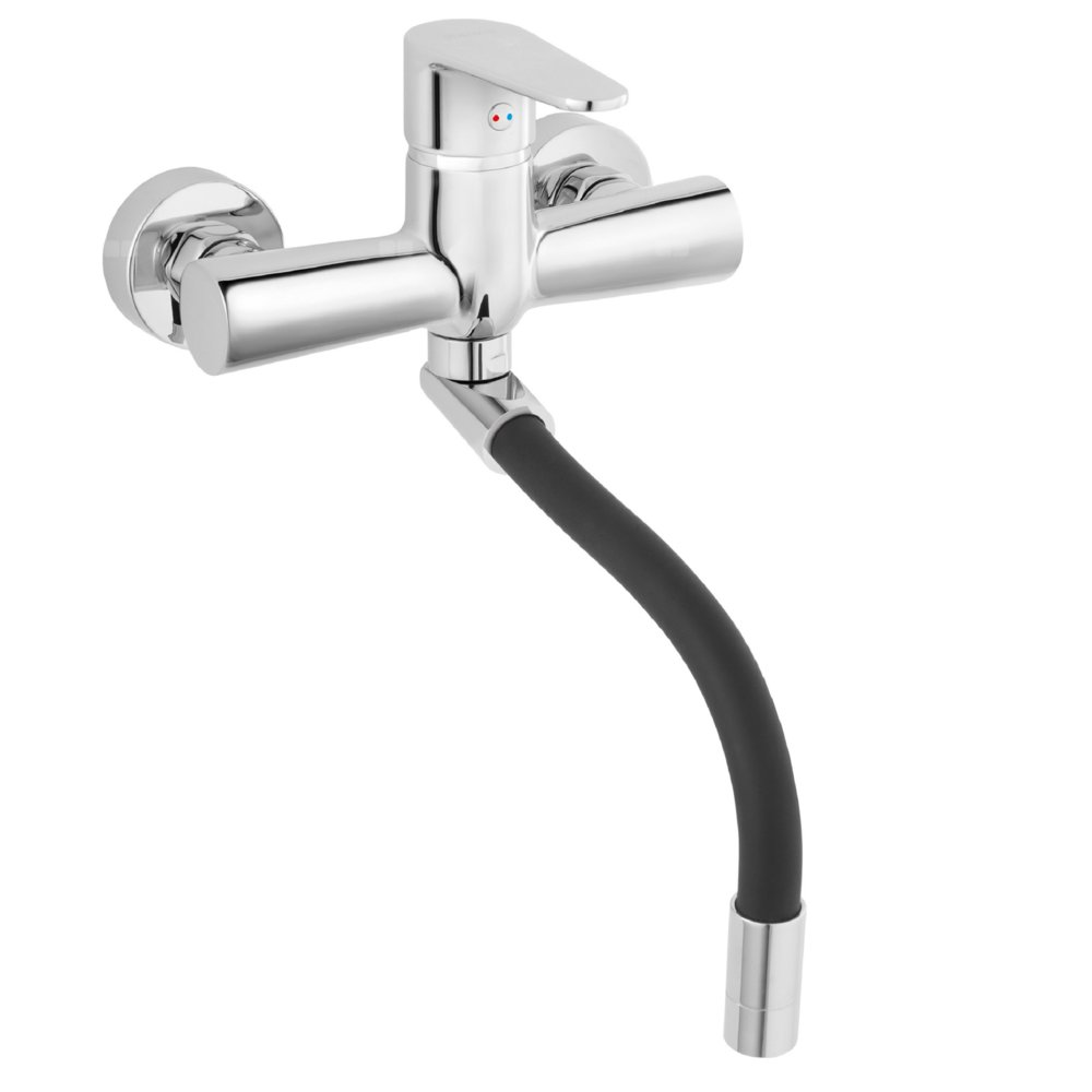 ALGEO bateria zlewozmywakowa ścienna, czarna elastyczna wylewka, chrom