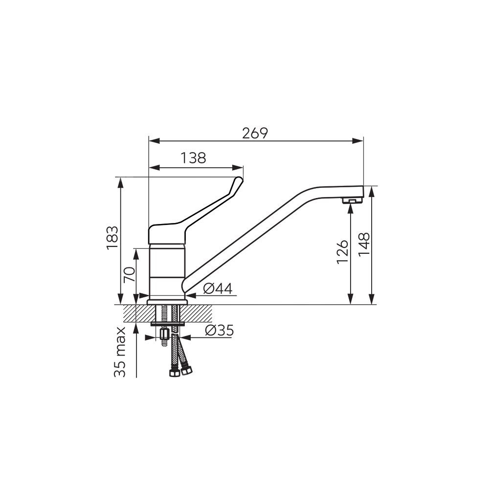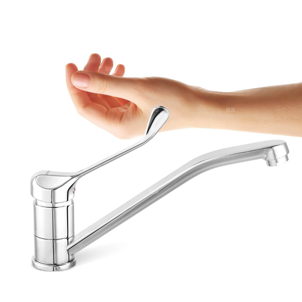 Bateria zlewozmywakowa medyczna o charakterystycznym owalnym kształcie. Obły kształt korpusu i wylewki ułatwi utrzymanie baterii w czystości, krople wody nie będą osiadać, pozostawiając przy tym mniej osadu wapiennego. Produkt posiada uchwyt medyczny z przedłużoną dźwignią, który ułatwia regulacje strumienia oraz temperatury wody. Obrotowa wylewka baterii zwiększa jej funkcjonalność.
