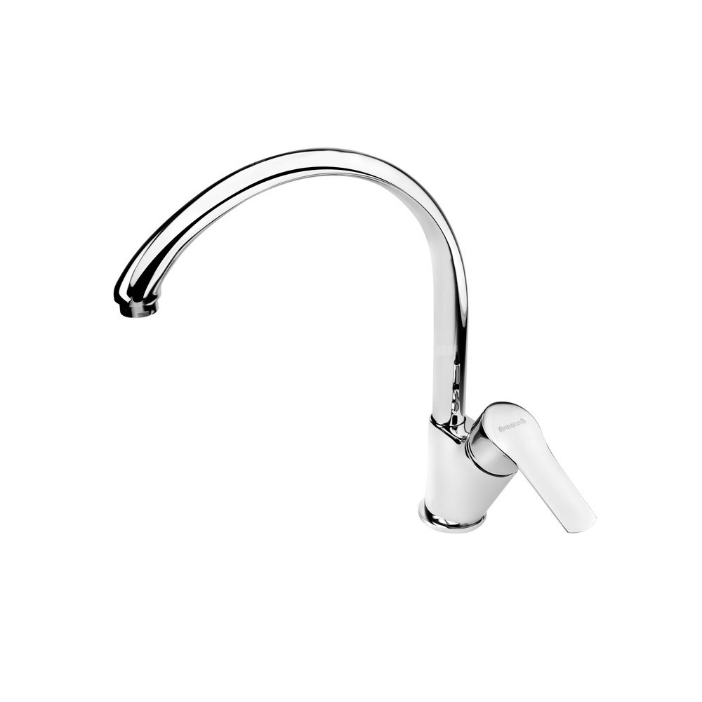Bateria zlewozmywakowa stojąca KFA Armatura MOHIT, obrot. wylewka, uchwyt boczny - skośny, kolor chrom, mosiądz