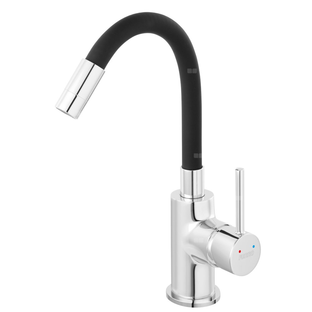 Bateria umywalkowa z ruchomą, elastyczną wylewką z możliwością formowania jej kształtu. Dzięki tej funkcji bateria staję się niezwykle praktyczna. Obły, cylindryczny kształt korpusu ułatwi utrzymanie baterii w czystości, krople wody nie będą osiadać, pozostawiając przy tym mniej osadu wapiennego.