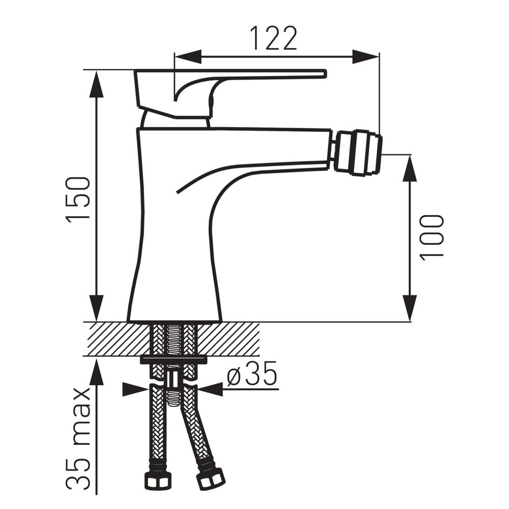 Bateria bidetowa o delikatnym kształcie z prostokątnym uchwytem. Idealnie pasuje do nowoczesnych wnętrz.