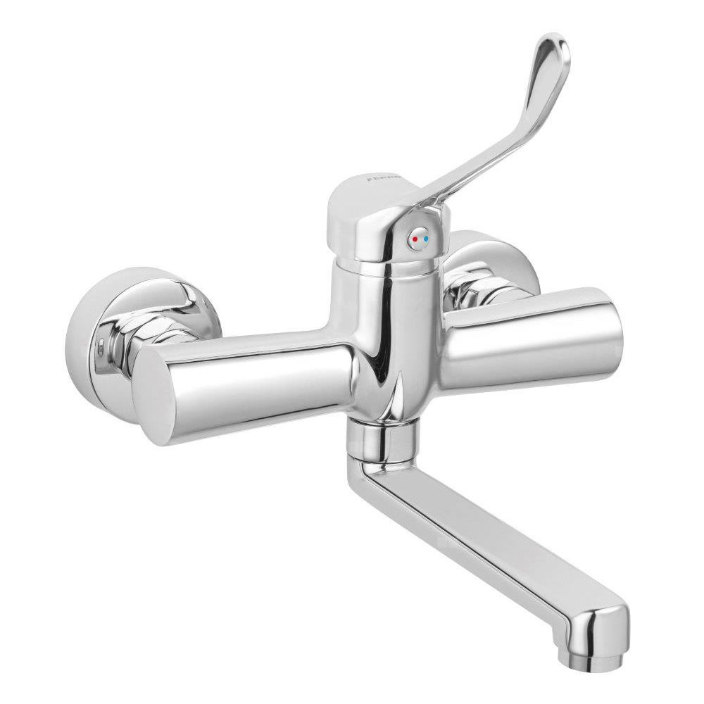 Bateria medyczna o charakterystycznym owalnym kształcie. Obły kształt korpusu i wylewki ułatwi utrzymanie baterii w czystości, krople wody nie będą osiadać, pozostawiając przy tym mniej osadu wapiennego. Produkt posiada uchwyt medyczny z przedłużoną dźwignią, który ułatwia regulacje strumienia oraz temperatury wody. Obrotowa wylewka baterii zwiększa jej funkcjonalność.
