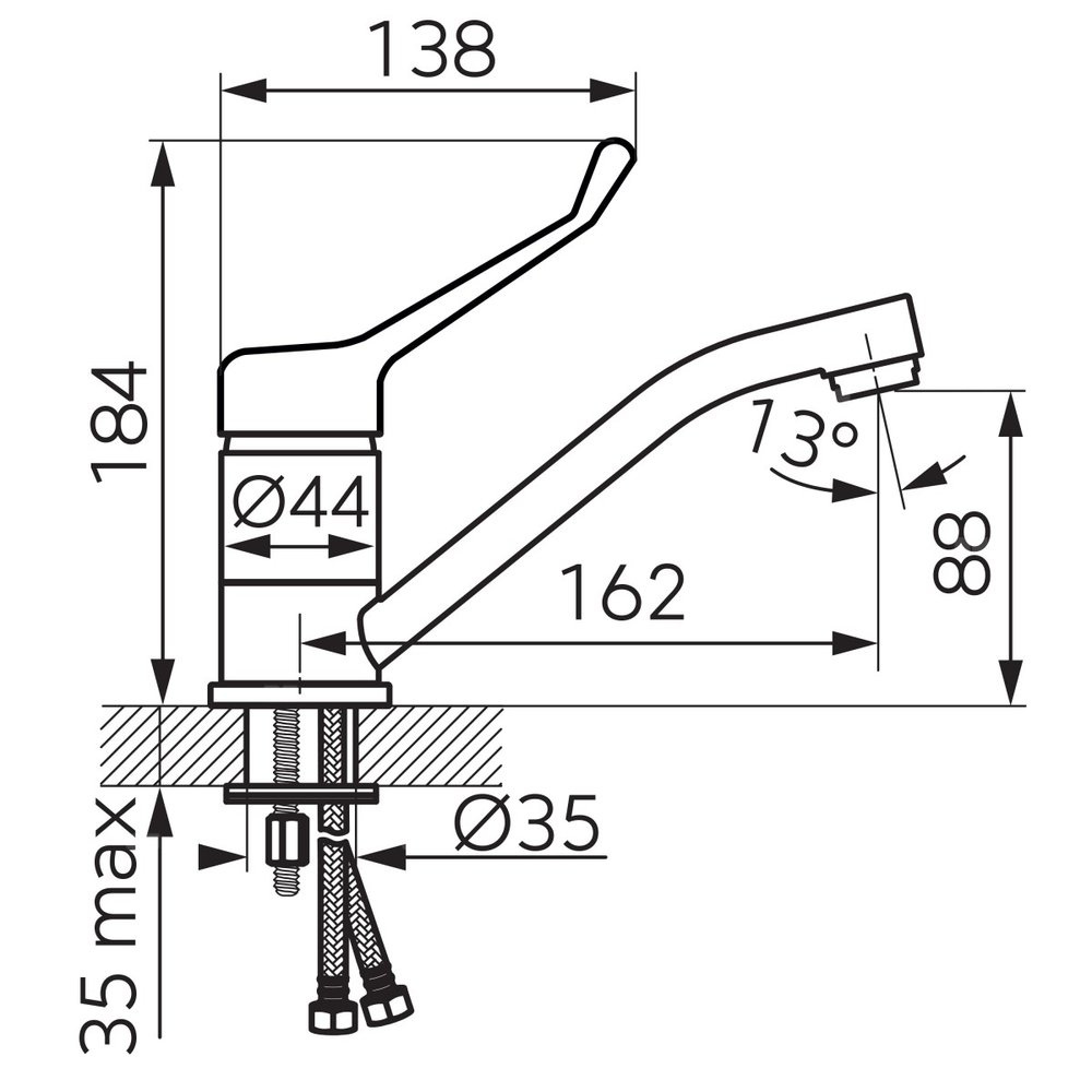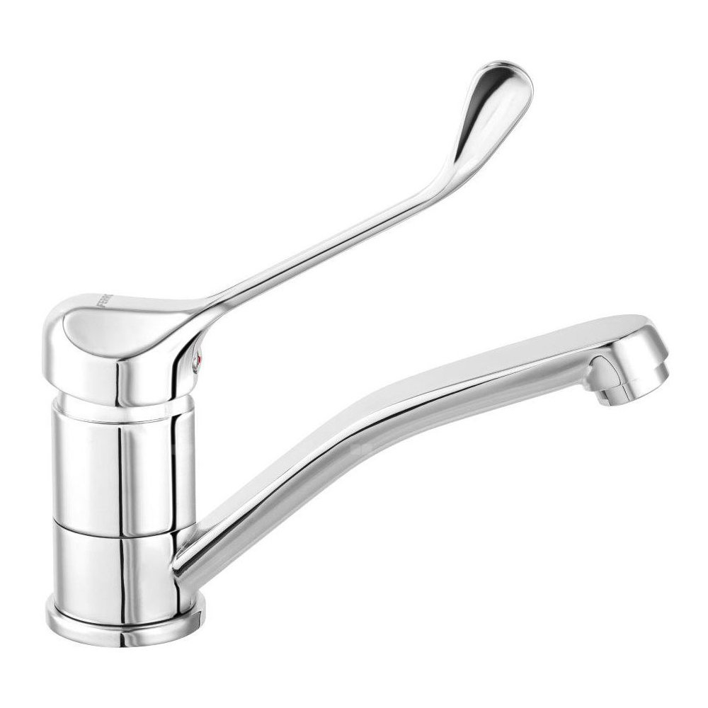 Bateria umywalkowa o charakterystycznym, owalnym kształcie. Obły kształt korpusu i wylewki ułatwi utrzymanie baterii w czystości, krople wody nie będą osiadać, pozostawiając przy tym mniej osadu wapiennego. Produkt posiada uchwyt medyczny z przedłużoną dźwignią, który ułatwia regulacje strumienia oraz temperatury wody. Obrotowa wylewka baterii zwiększa jej funkcjonalność.