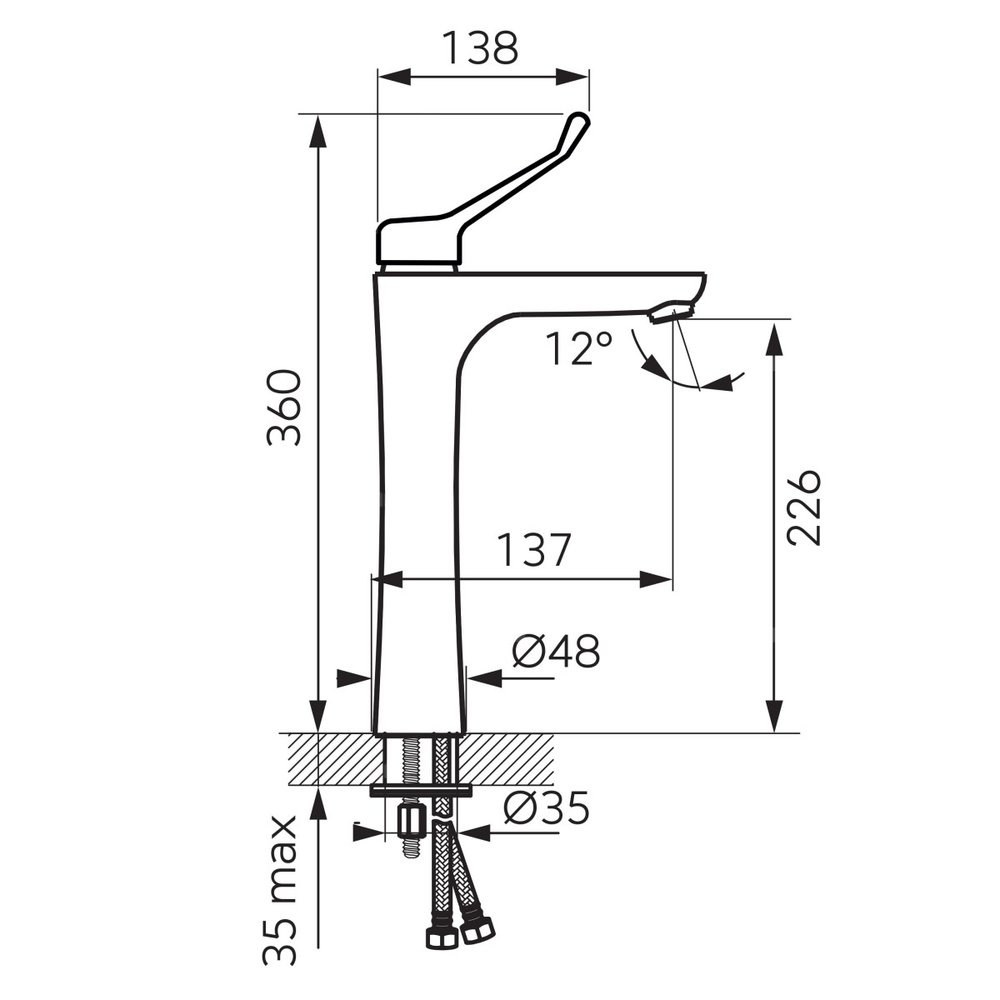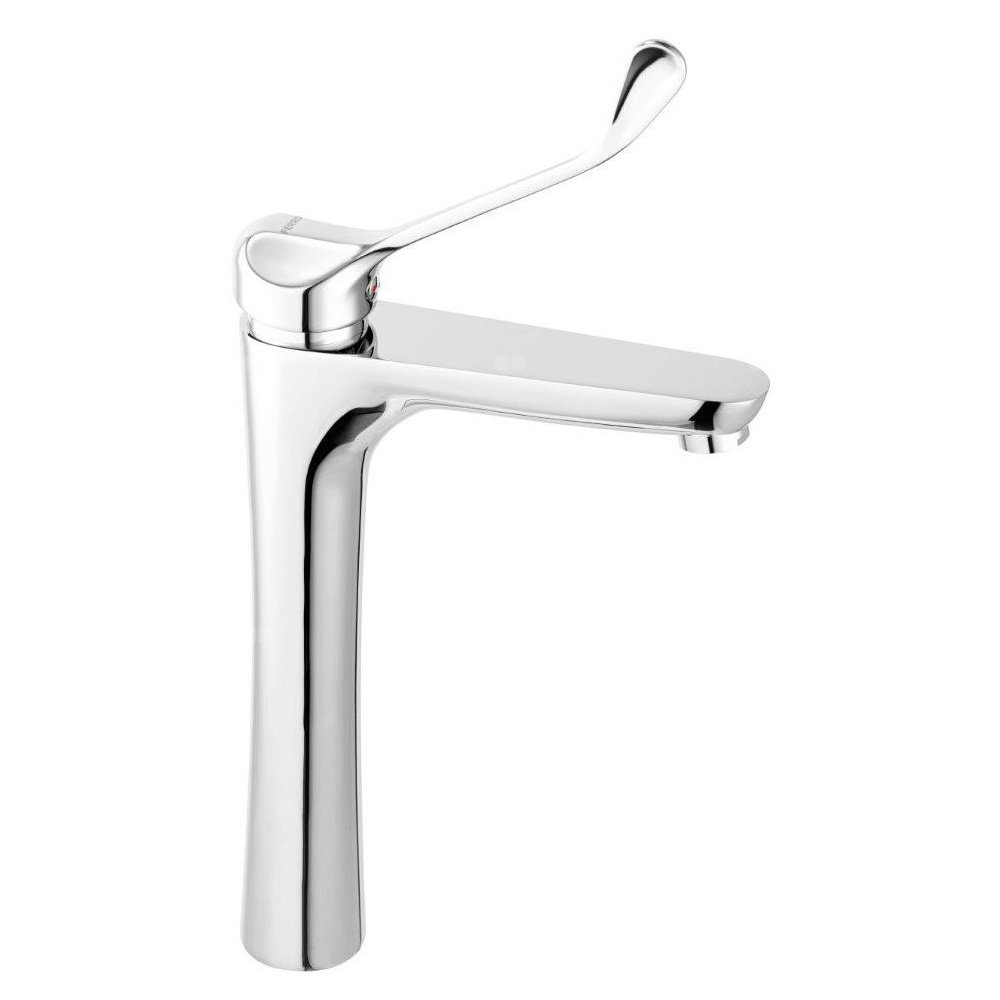 Bateria umywalkowa nablatowa o charakterystycznym, owalnym kształcie. Obły kształt korpusu i wylewki ułatwi utrzymanie baterii w czystości, krople wody nie będą osiadać, pozostawiając przy tym mniej osadu wapiennego. Bateria posiada uchwyt medyczny z przedłużoną dźwignią, który ułatwia regulacje strumienia oraz temperatury wody.