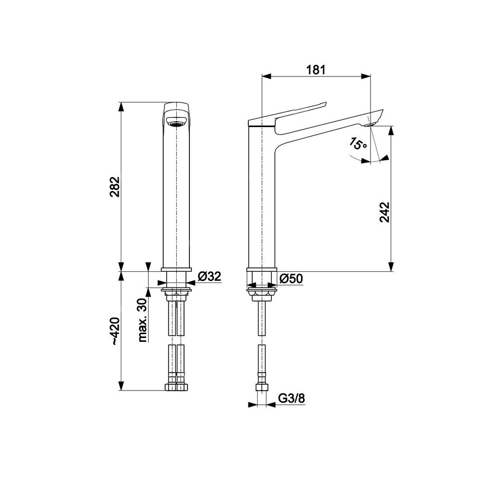 Bateria umywalkowa stojąca nablatowa KFA Armatura AMAZONIT click clack, chrom, montaż blat / otwór na baterię