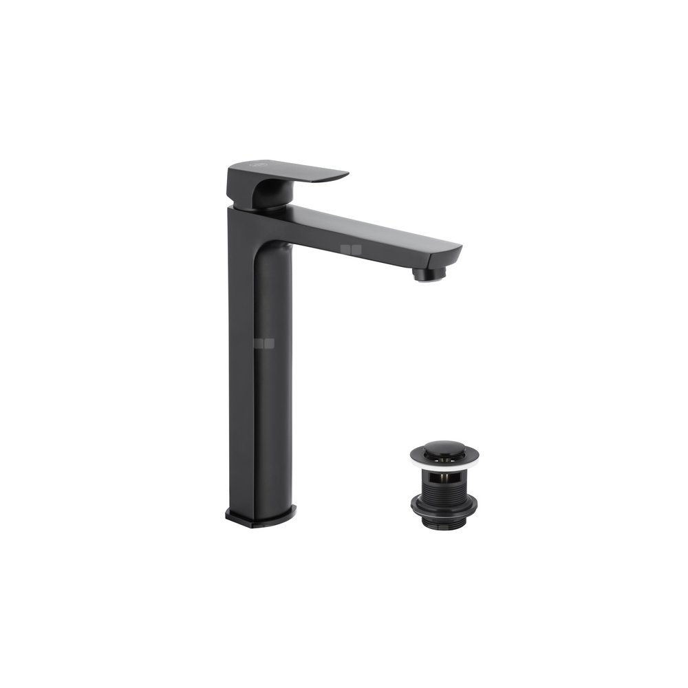 Bateria umywalkowa stojąca nablatowa KFA Armatura MOKAIT click clack, czarny, montaż blat / otwór na baterię