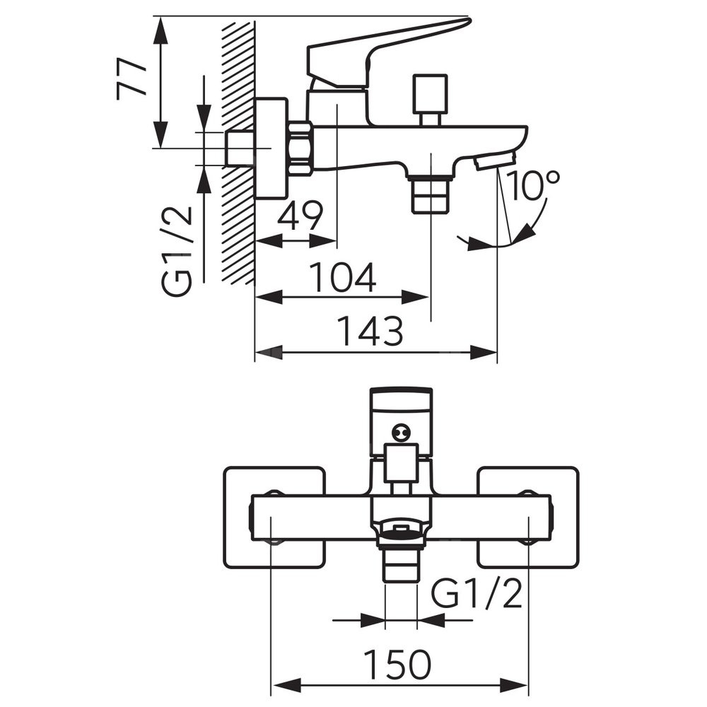 Bateria wannowa w nowoczesnym, prostokątnym dizajnie. Zastosowany w przyłączu natrysku ogranicznik przepływu redukuje zużycie wody nawet do 50%. Posiada on również funkcje zaworu zwrotnego, który ma zabezpieczać przed cofnięciem się brudnej wody do instalacji.
