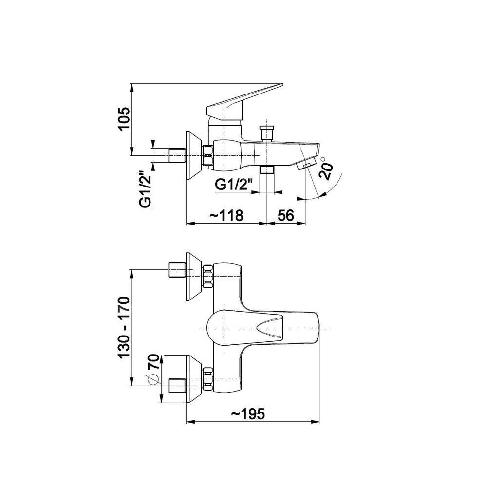 Bateria topaz wannowa ścienna chrom