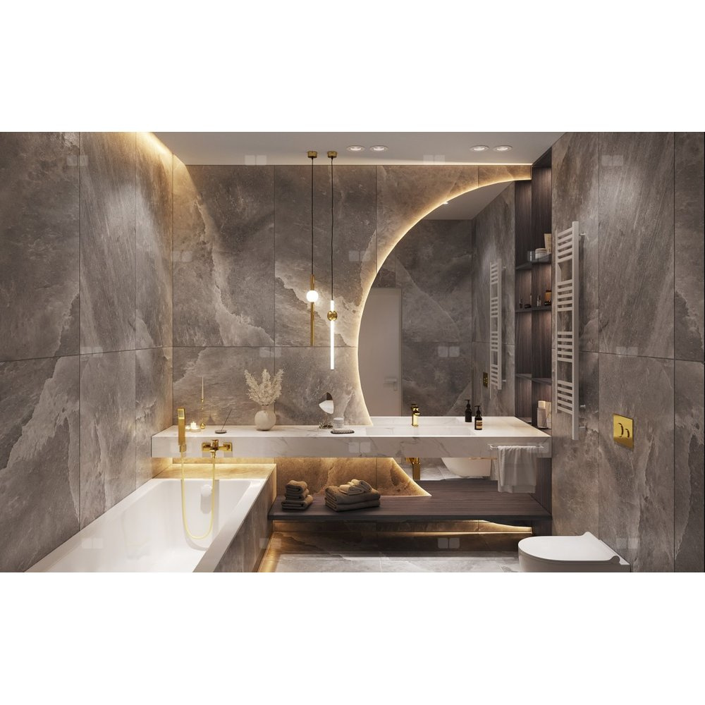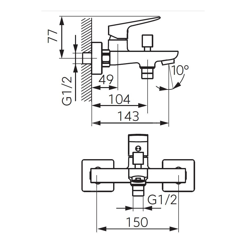 Bateria wannowa w nowoczesnym, prostokątnym dizajnie. Zastosowany w przyłączu natrysku ogranicznik przepływu redukuje zużycie wody nawet do 50%. Posiada on również funkcje zaworu zwrotnego, który ma zabezpieczać przed cofnięciem się brudnej wody do instalacji.