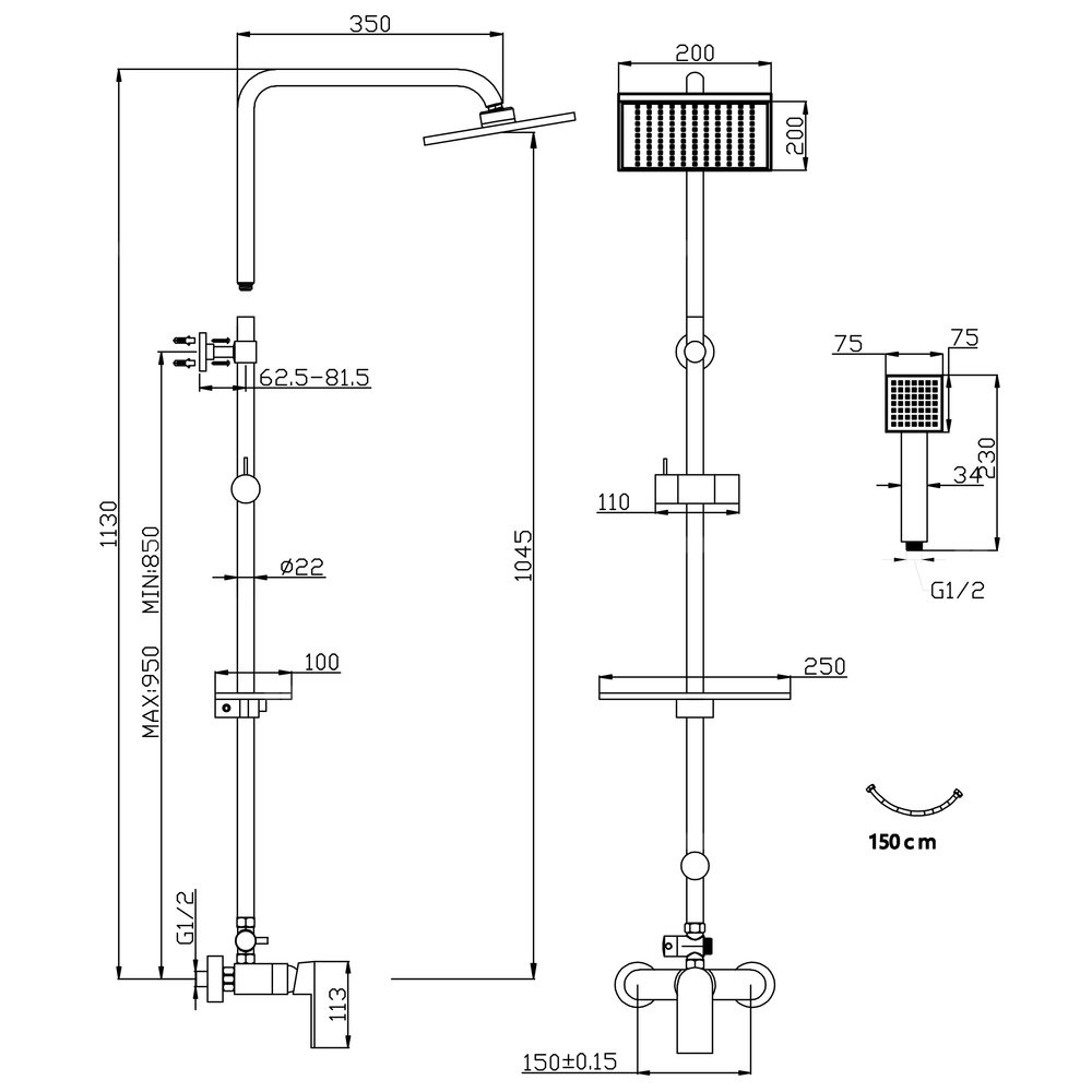 Zestaw natryskowy składający się z nowoczesnej, kwadratowej deszczownicy 20 x 20 cm, 1-funkcyjnej ergonomicznej rączki natryskowej oraz baterii natryskowej. System Easy Clean ułatwi usuwanie osadu wapiennego z rączki i deszczowni. W zestawie znajdziemy również praktyczną półkę na kosmetyki.