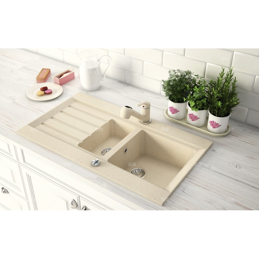 Bateria zlewozmywakowa z o delikatnej, owalnej formie. Obły kształt korpusu i wylewki ułatwi utrzymanie baterii w czystości, krople wody nie będą osiadać, pozostawiając przy tym mniej osadu wapiennego. Bateria wyposażona jest w wyciąganą końcówkę wylewki z możliwością zmiany strumienia.