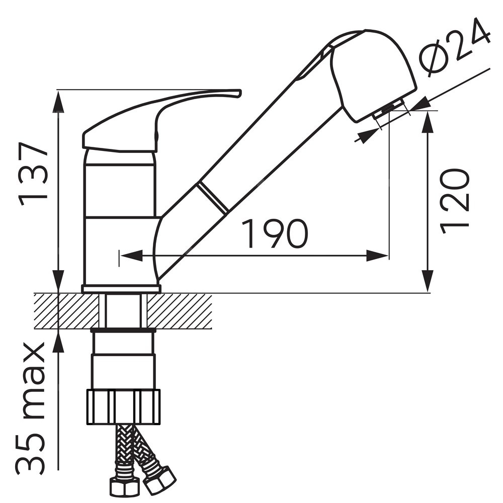 Bateria zlewozmywakowa o charakterystycznym owalnym kształcie. Obły kształt korpusu i wylewki ułatwi utrzymanie baterii w czystości, krople wody nie będą osiadać, pozostawiając przy tym mniej osadu wapiennego. Bateria posiada obrotową wylewkę z wyciąganym natryskiem, która dodatkowo zwiększa jej funkcjonalność.