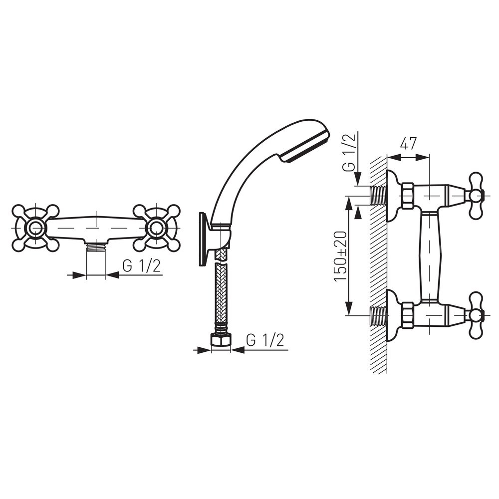 Bateria natryskowa w unikalnym dizajnie retro, idealnie pasująca do łazienek w stylu vintage. W komplecie z punktowym zestawem natryskowym.