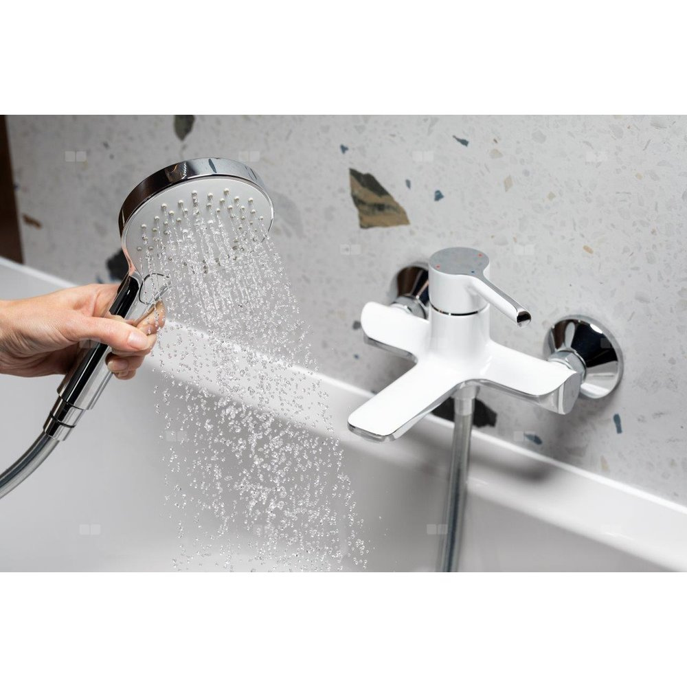 Rączka natryskowa angelit okrągła, 3-Funkcyjna z przyciskiem, chrom+Biały