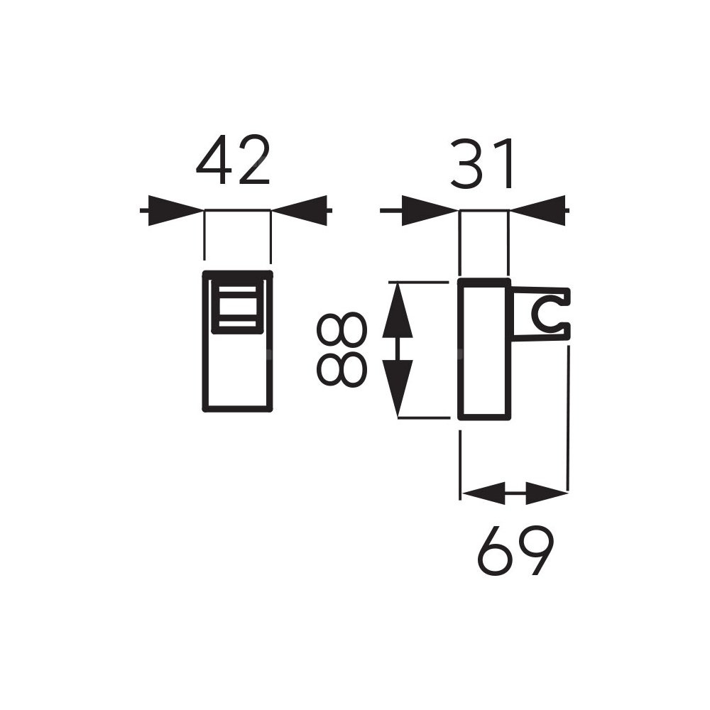 Uchwyt z regulacja kąta pochylenia rączki natryskowej. Możliwość zastosowania dowolnej rączki prysznicowej z wężem 1/2 " z nakrętką stożkową.