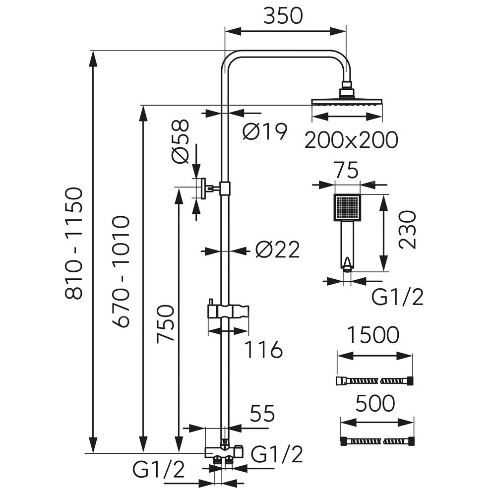 Zestaw natryskowy składający się z nowoczesnej, kwadratowej deszczownicy 20 x 20 cm, 1-funkcyjnej ergonomicznej rączki natryskowej. System Easy Clean ułatwi usuwanie osadu wapiennego z rączki i deszczowni. Estetyczny i ergonomiczny przełącznik funkcji natrysku, który zintegrowany jest z dolnym mocowaniem. Produkt posiada regulacje, wysokości głowicy deszczownicy, tak aby móc dopasować ją do wzrostu użytkownika.