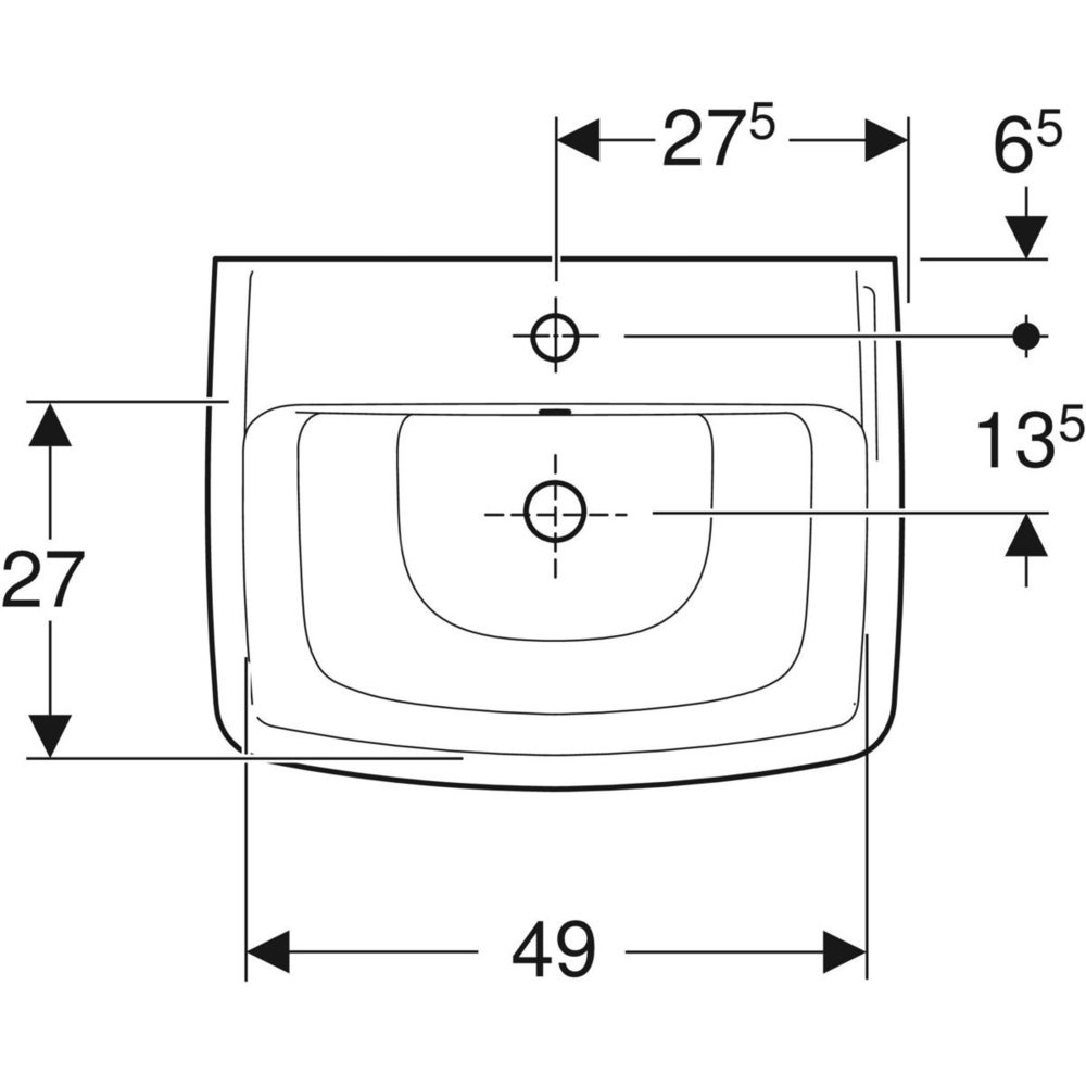Umywalka Koło Rekord, kształt geometryczny: 55x42cm, Otwór na baterię=Na środku, Przelew=Widoczny, Biały