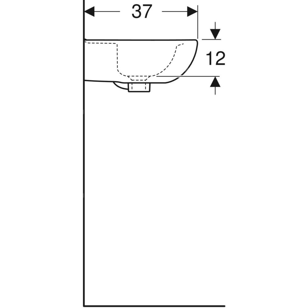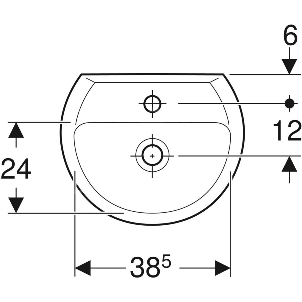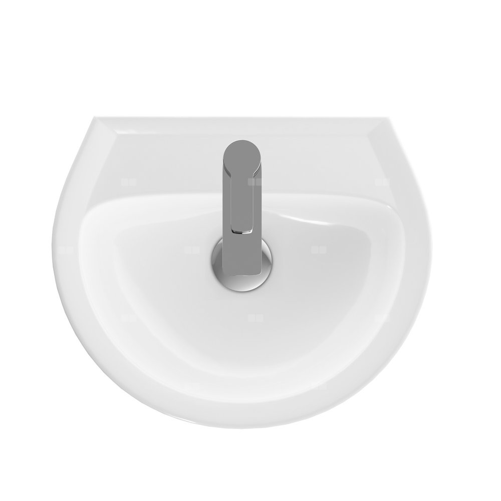 Umywalka mała Koło Rekord z asymetrycznym przelewem: 45x37cm, Otwór na baterię=Na środku, Przelew=Widoczny, Biały