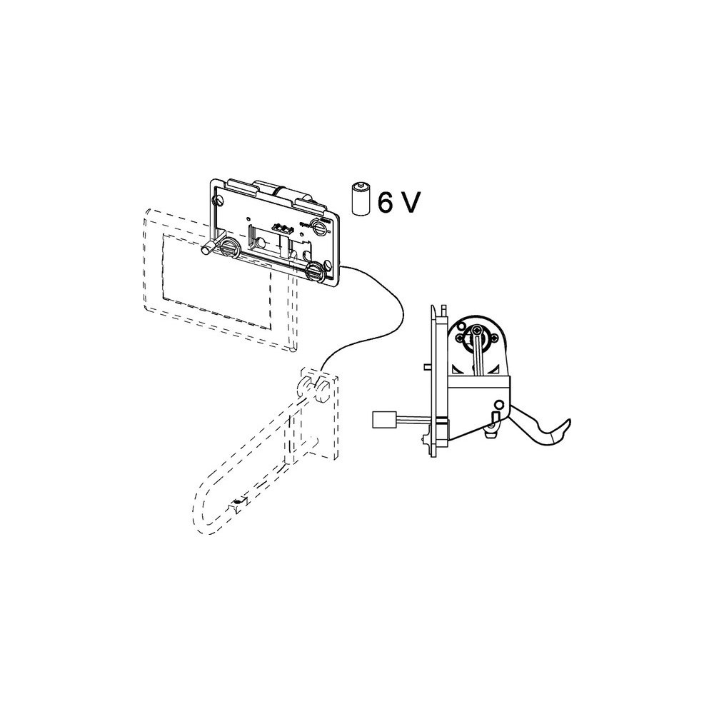 Mechanizm spłukujący elektroniczny do WC TECE planus, zasilanie bateryjne 6 V, przycisk elektryczny montowany na poręczy - wersja przewodowa
