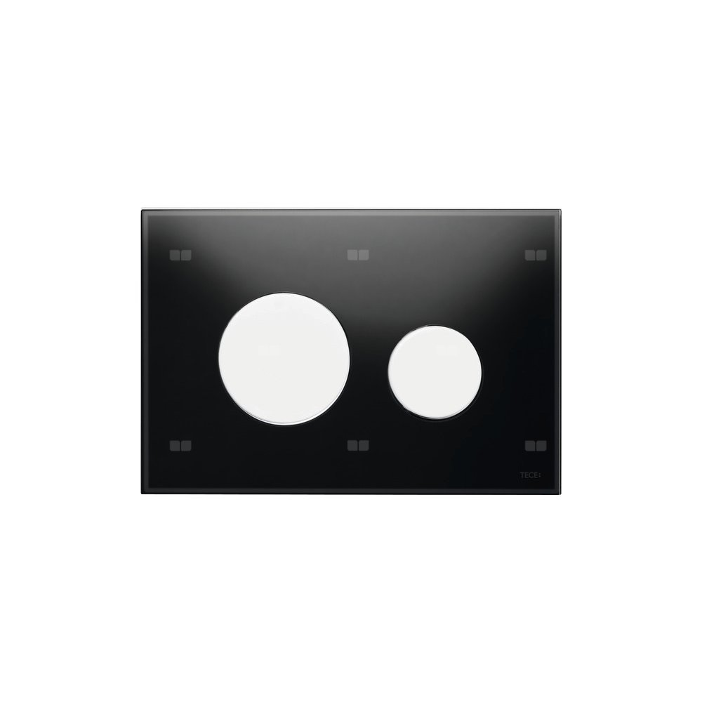 Przycisk spłukujący do spłuczek TECE uruchamiany z przodu lub od góry. Płaski przycisk spłukujący ze szkła z dwoma sprężynującymi przyciskami. Odpowiedni do montażu zlicowanego w połączeniu z ramką montażową do WC (np. 9240649). Kompatybilny z płytką maskującą z koszem na kostki czyszczące.