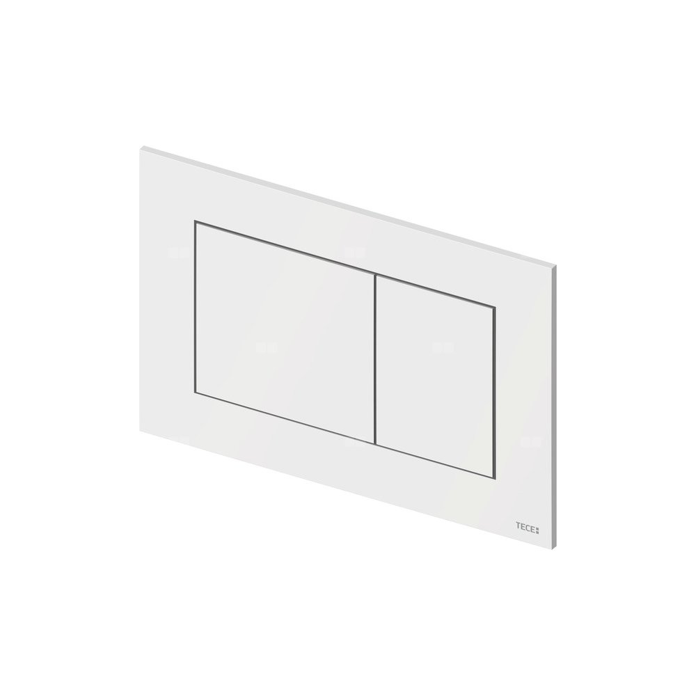 Przycisk spłukujący do spłuczek TECE uruchamiany z przodu lub od góry. Bardzo płaski przycisk spłukujący z tworzywa sztucznego, wyposażony w gumowe odboje z obu stron. W komplecie popychacze i materiały montażowe. Odpowiedni do montażu zlicowanego w połączeniu z ramką montażową do WC i ramką dystansową TECE. Kompatybilny z płytką maskującą z koszem na kostki czyszczące.