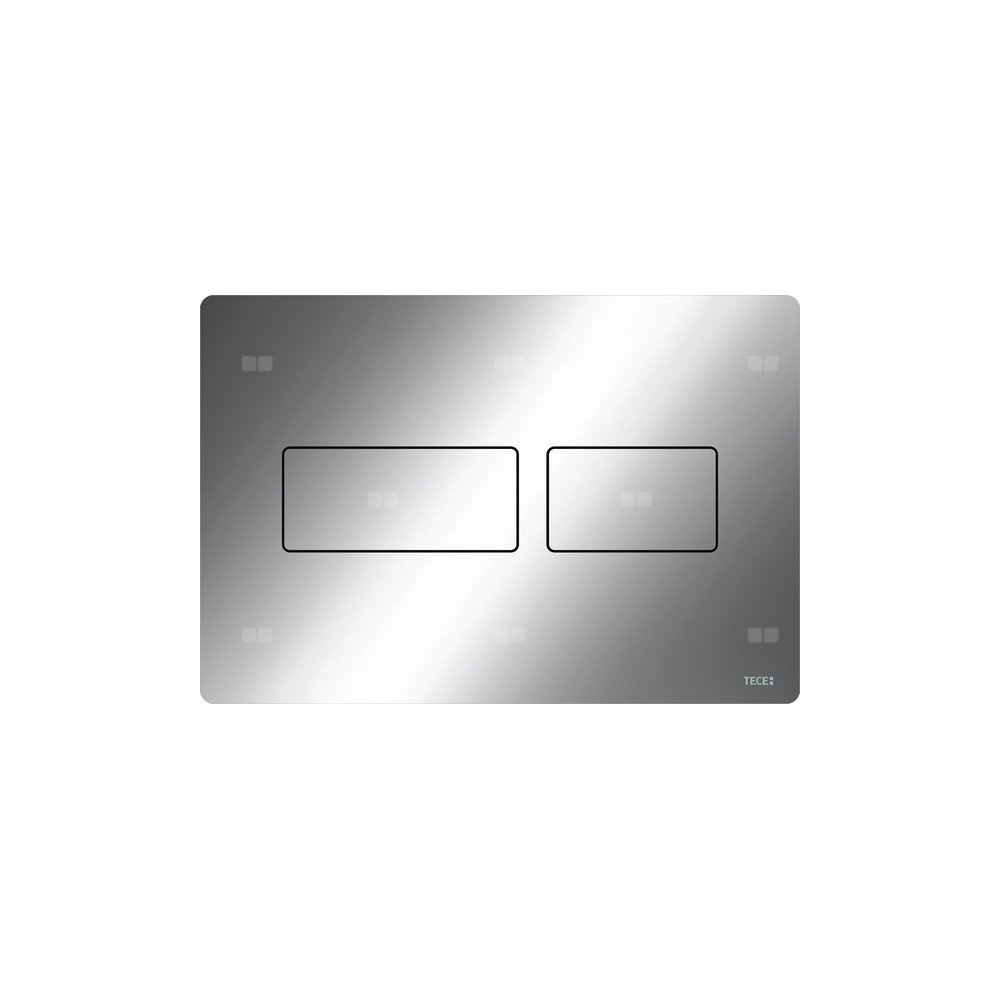 Przycisk spłukujący do spłuczek TECE uruchamiany z przodu lub od góry. Bardzo płaski metalowy przycisk spłukujący, wyposażony w gumowe odboje z obu stron. W komplecie popychacze i materiały montażowe. Kompatybilny z płyta maskująca z koszem na kostki czyszczące. Wymiary: 220x150x6mm