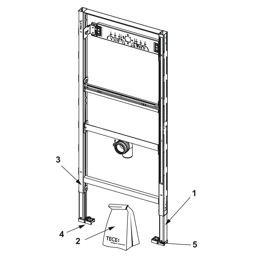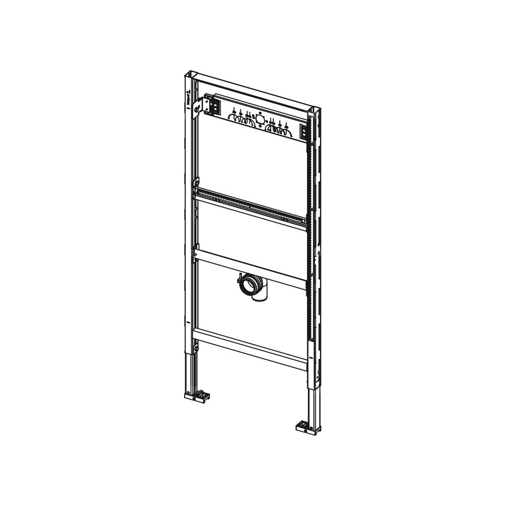Stelaż pisuarowy do natynkowych zaworów spłukujących oraz systemów spłukujących "ukrytych" schowanych za ceramiką. Stelaż montażowy do mocowania na kształtownikach stalowych TECEprofil lub do montażu w ścianach z profili metalowych lub drewnianych oraz jako ścianka przednia lub moduł narożnikowy.