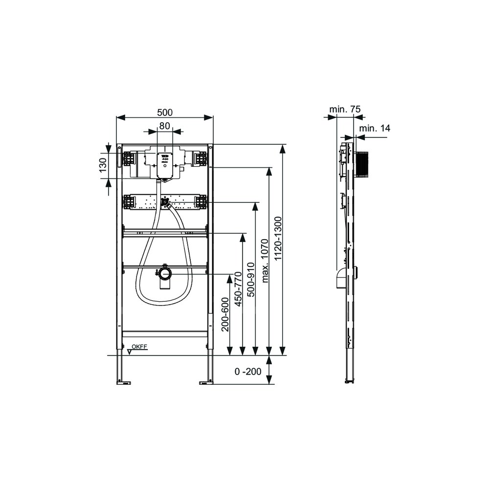 Stelaż do pisuaru do mocowania elektronicznych systemów uruchamiania TECEfilo, na kształtownikach stalowych TECEprofil lub do montażu w ściankach z profili metalowych lub drewnianych oraz jako ściana przednia i moduł narożnikowy.