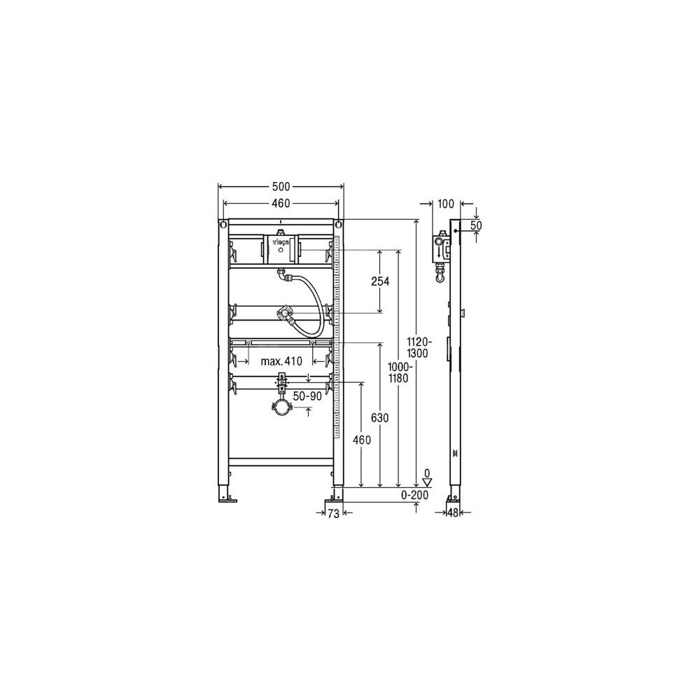 Stelaż podtynkowy do pisuaru VIEGA 856032, 1120 x 500 x 100 mm, regulowana wysokość, ze spłuczką ciśnieniową
