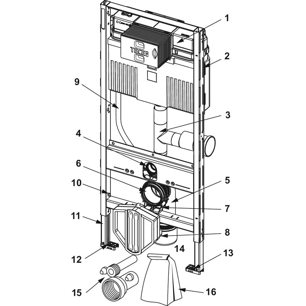 • TECE zestaw montażowy do ceramiki myjącej w zabudowie suchej