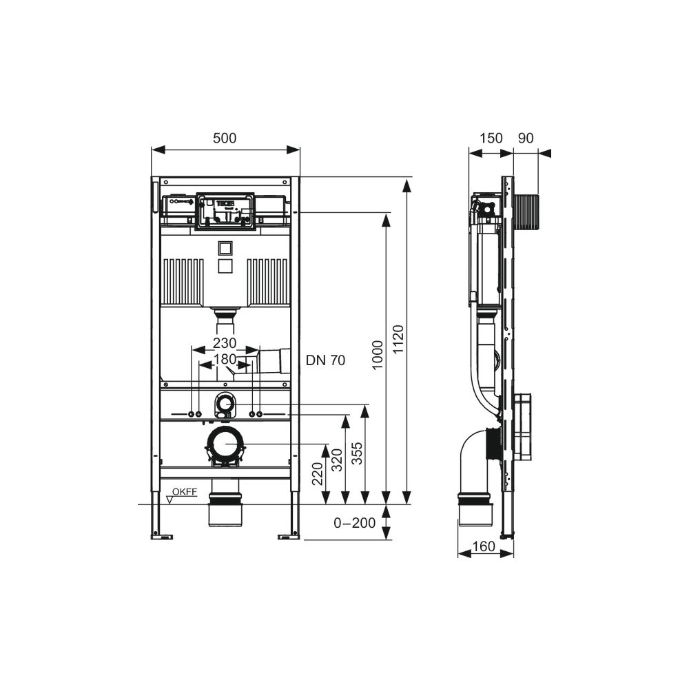 Stelaż podtynkowy do WC TECE profil, 1120 x 500 x 160 mm, regulowana wysokość, ze spłuczką