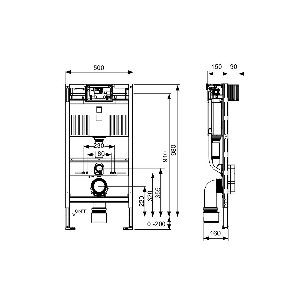 - zestaw przyłączeniowy do instalacji do uniwersalnych stelaży do toalet myjących 980 mm