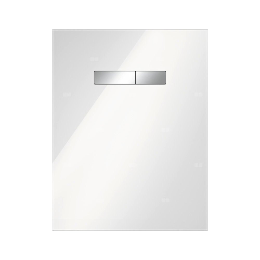 Górna obudowa szklana z mechanizmem uruchamiającym do modułu TECElux z dwoma przyciskami spłukującymi, popychaczami i elementami montażowymi.