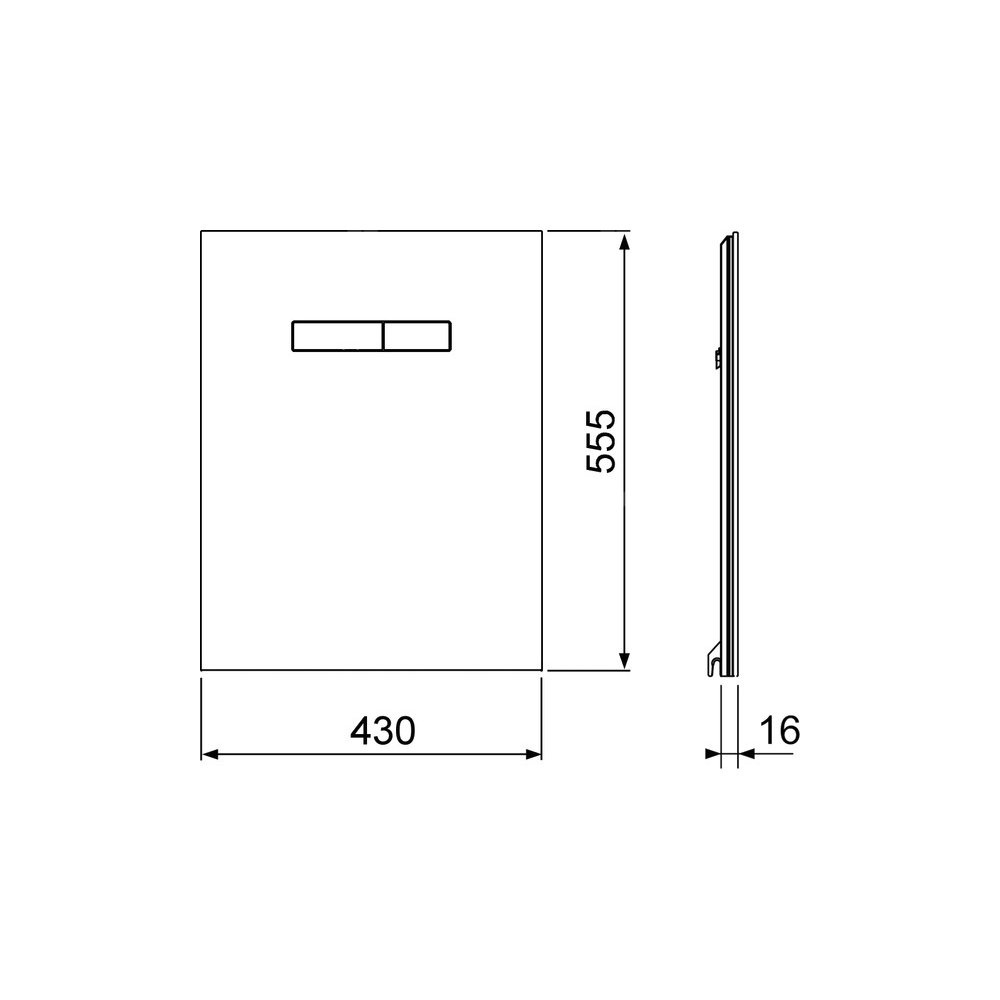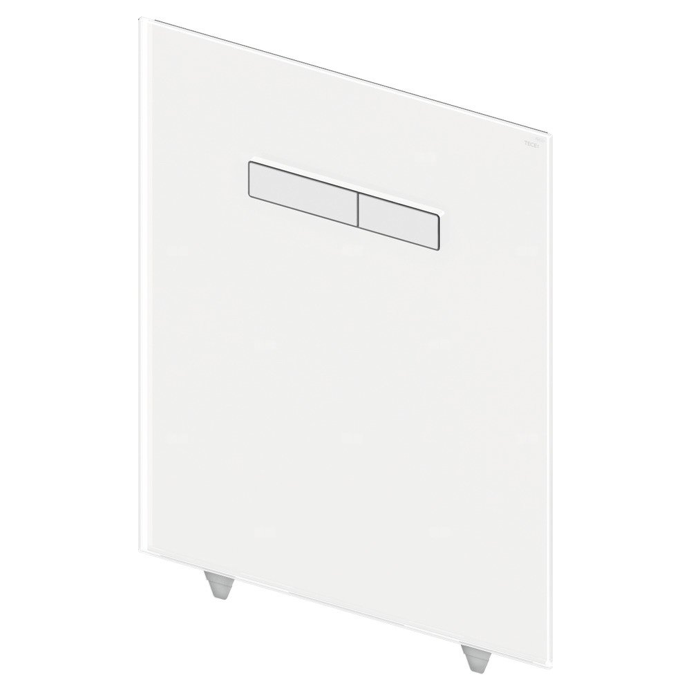 Górna obudowa szklana z mechanizmem uruchamiającym do modułu TECElux z dwoma przyciskami spłukującymi, popychaczami i elementami montażowymi.